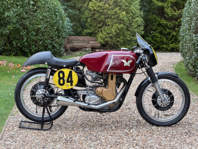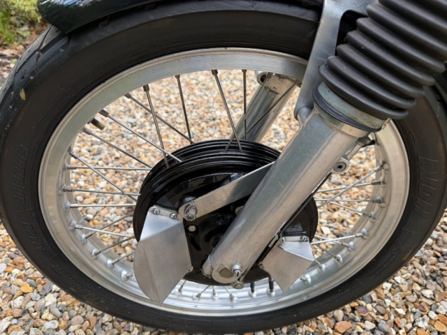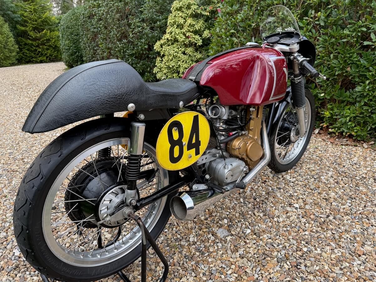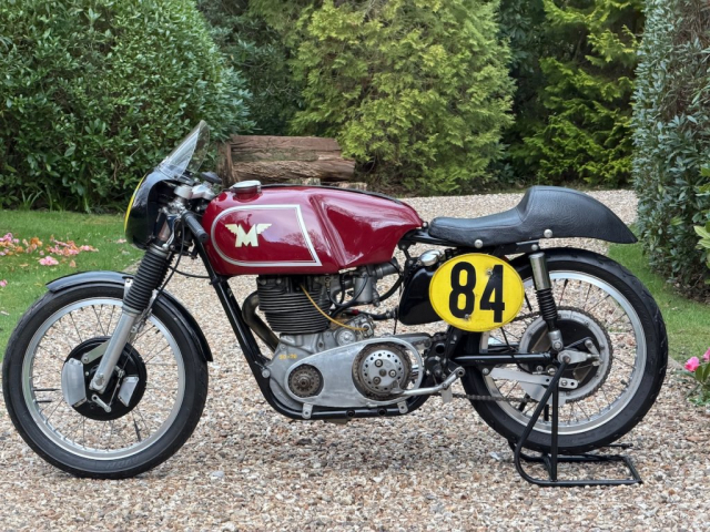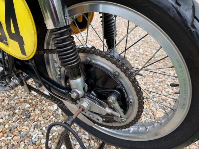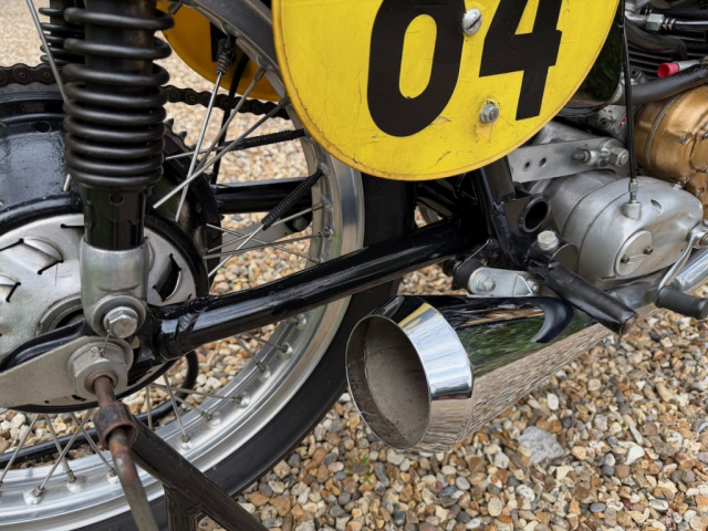 Ridden by Tommy Robb himself and presented with a lovely picture of him on the bike on a race start line with a personal message of thanks to the owner of the time and signed by the man himself. This is an excellent late example of Matchless’ iconic race winning single. Last used in 2004 and comes with some interesting history which includes detailed set-up notes and specifications from around 2003 when it was ridden in classic events. These notes are detailed and convey a reassuring sense of technical competence, including pages of piston to valve clearances, squish band measures and compression ratios. There is an original table of gear ratios provided to the owner by Tommy Robb and detailed in a signed letter from Tommy dated 1995. It’s due in any time now but just look at it and imagine what fun you could have on it when recommissioned by Classic Bike Workshop. Has a CRMCC registration number issued in 1992 and the certificate is on file, along with a picture of the owner/racer himself on track. The engine number 4801 appears clearly and unmolested on the engine and in all the paperwork, the frame number; again clearly stamped and unmolested; is 1653 on the base of the steering head stem. I’m no expert but I’d say this is an incredibly well preserved original frame with an engine in race-spec crankcases which is what it should be if used on track. Gearbox is stamped LWH5 easily visible, there are more numbers on closer inspection; 71 G50 and a casting mark on the crankcases. Pictures provided on application.