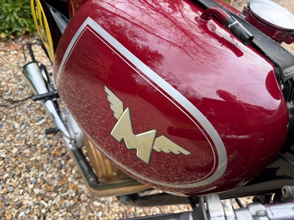 Workshop inspection now completed and it is clear that this machine has been properly decommissioned for storage/ display. Alloy fuel tank is clean and empty, same as the oil tank, oil feed and return pipes blanked off and everything inside is clean, oiled and free-moving. Good compression and a very healthy spark from the Lucas competition magneto. There is a workshop report available and we feel strongly that it will recommission with the minimum of attention but we’re not going to go any further because we know that the next owner will probably want to inspect and decide for themselves what to do and what not to do. We will recommission if asked to of course, at cost. It will be loud!