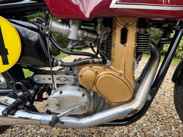 Workshop inspection now completed and it is clear that this machine has been properly decommissioned for storage/ display. Alloy fuel tank is clean and empty, same as the oil tank, oil feed and return pipes blanked off and everything inside is clean, oiled and free-moving. Good compression and a very healthy spark from the Lucas competition magneto. There is a workshop report available and we feel strongly that it will recommission with the minimum of attention but we’re not going to go any further because we know that the next owner will probably want to inspect and decide for themselves what to do and what not to do. We will recommission if asked to of course, at cost. It will be loud!