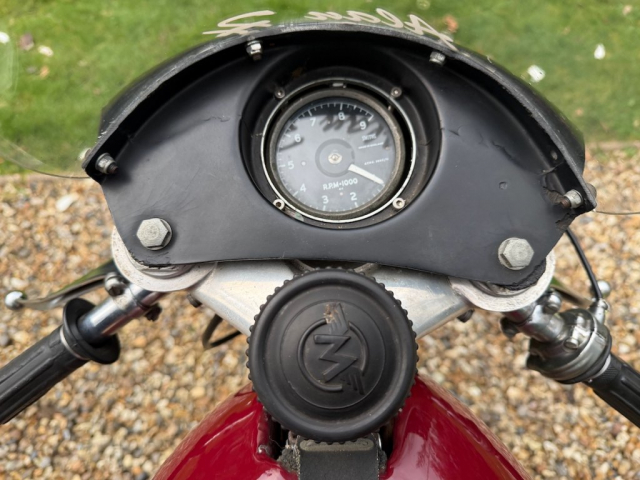 Workshop inspection now completed and it is clear that this machine has been properly decommissioned for storage/ display. Alloy fuel tank is clean and empty, same as the oil tank, oil feed and return pipes blanked off and everything inside is clean, oiled and free-moving. Good compression and a very healthy spark from the Lucas competition magneto. There is a workshop report available and we feel strongly that it will recommission with the minimum of attention but we’re not going to go any further because we know that the next owner will probably want to inspect and decide for themselves what to do and what not to do. We will recommission if asked to of course, at cost. It will be loud!