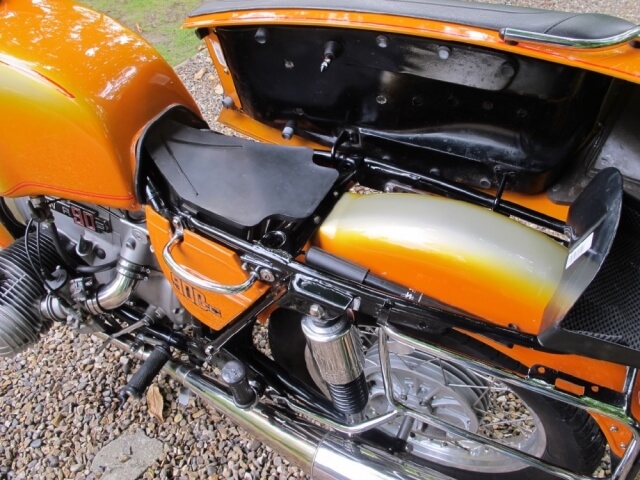 Lovingly restored and cherished by every owner since, this superb R90S has only covered about 3,000 miles since full restoration. These are the latest September 2017 pictures and video, replacing the older ones you may have seen on this website before. Keith Shaw restored machines rarely come on the market (he used to build to order) and always command a premium. This UK R90S has been completely restored, including a full mechanical rebuild of engine, gearbox and differential. This included post 1984 rocker gear, a torsion damper in the drive shaft, slickshift gearbox mods, electronic ignition and progressive fork springs. All fasteners and some components (full exhaust, carb intakes, rear brake rod etc) have been replaced with stainless steel. The paint was done by Dream Machine (the only company Keith Shaw will use). The frame has been stove enamelled. Both wheels were rebuilt with stainless spokes. Keith always incorporates some tasteful improvements to his machines (sensible engine mods, master cylinder moved to the handlebars, deeper engine sump, fork brace etc). It has newish Hepco & Becker Traditional panniers (look exactly like the Krausers, but much better finished and a far superior pannier to frame locking system) and recent chrome pannier frames. A full document file includes lots of invoices, old MOTs and riders/owners manuals with handwritten service notes. Oils & filters were changed recently and valve clearances were adjusted too. It has just been checked out by Classic Bike Workshop so the bike is ready to ride anywhere. Previously sold by CSB and glad to have her back.