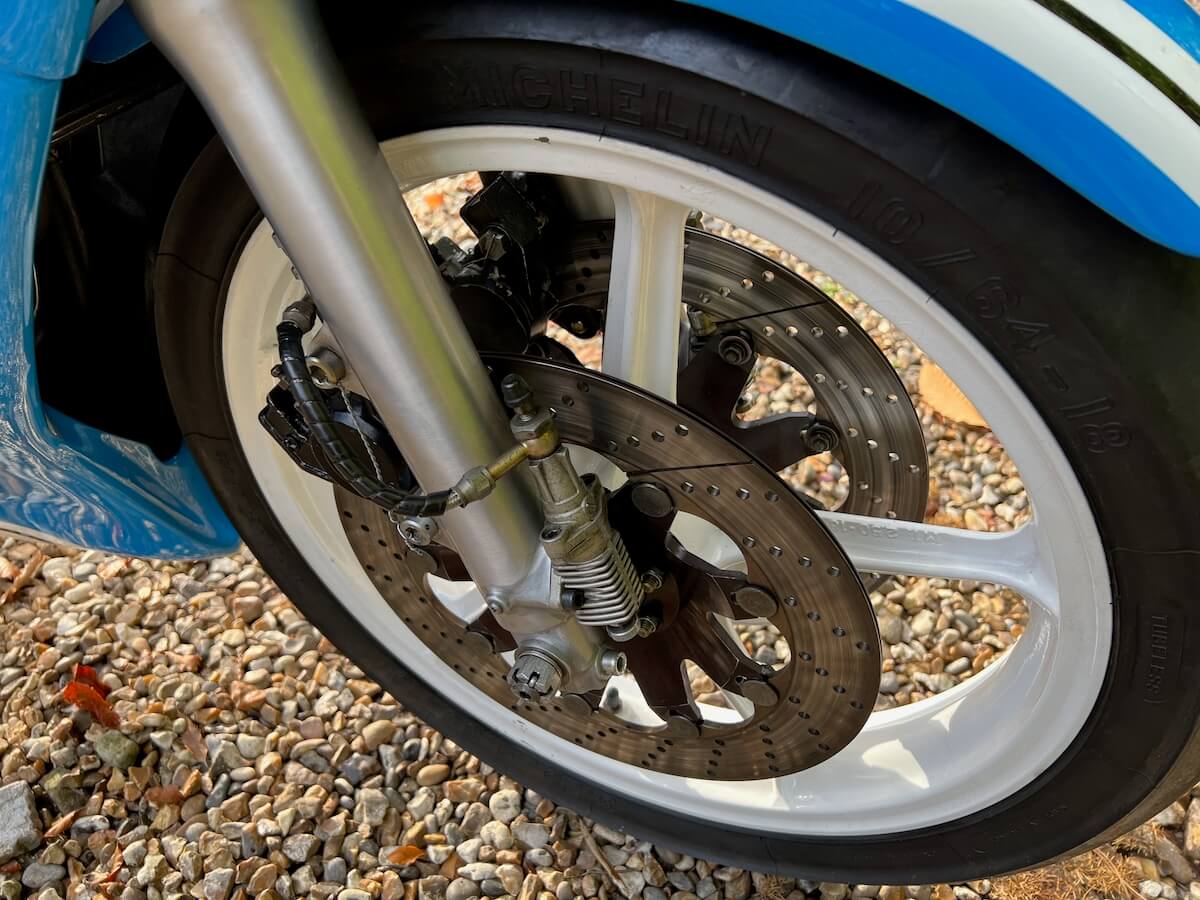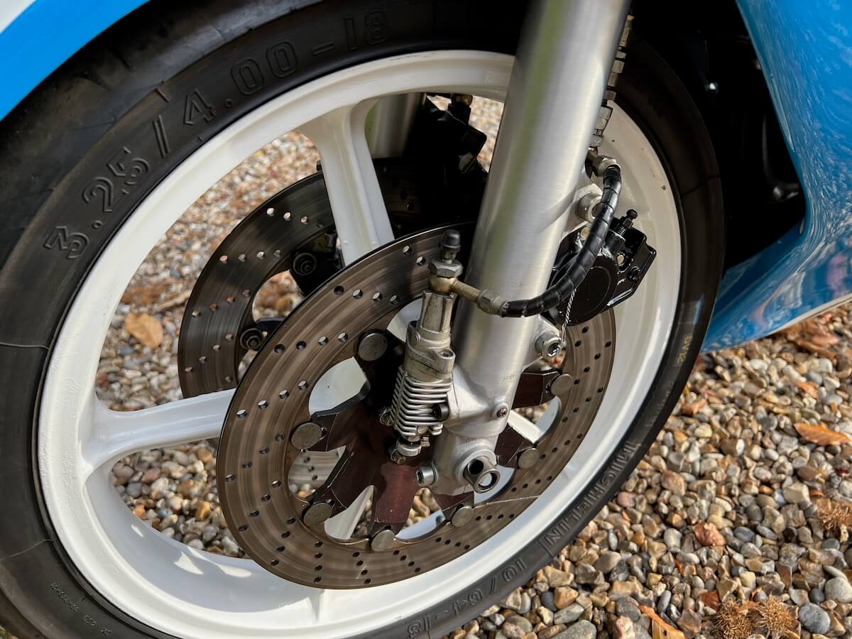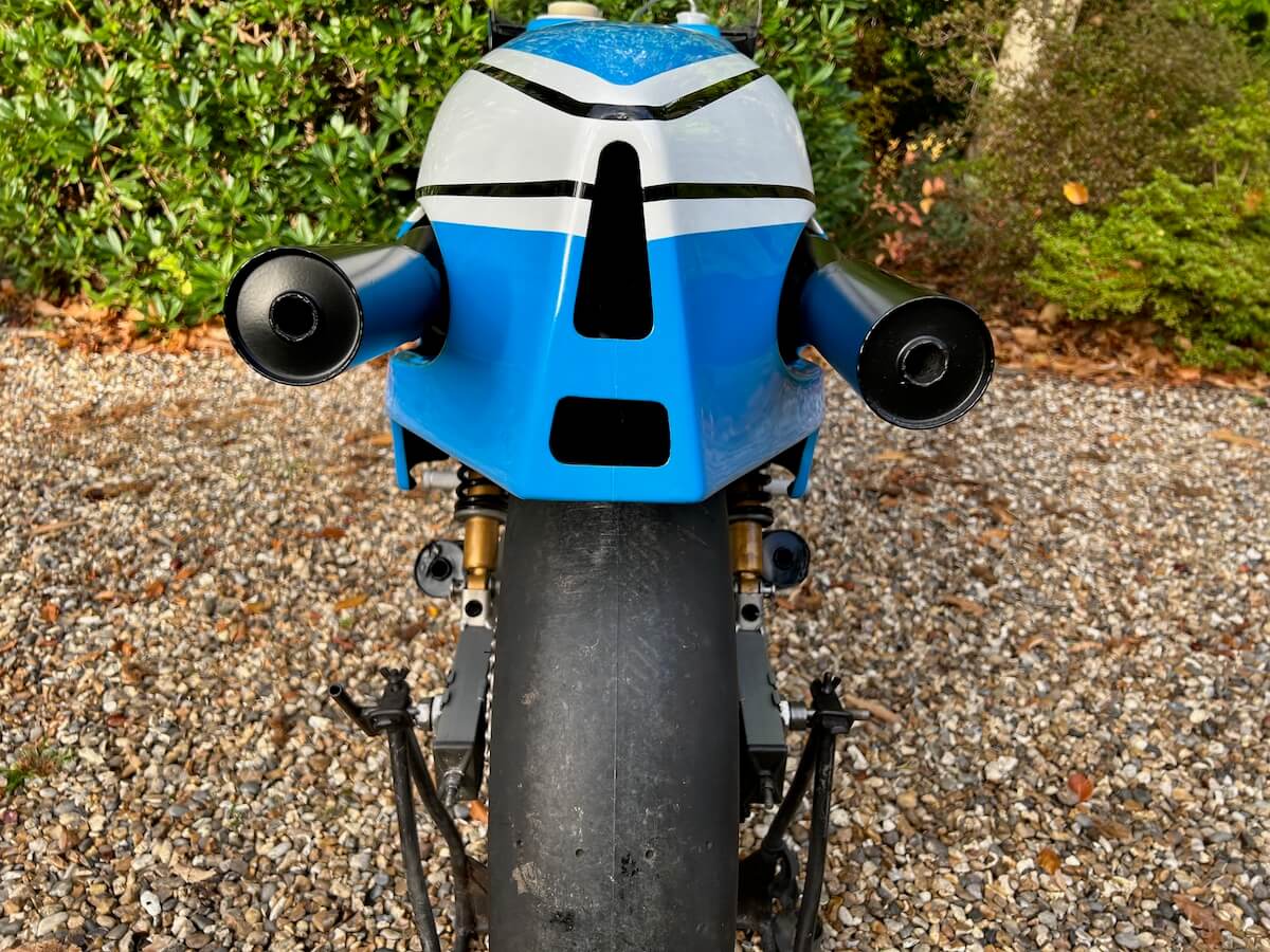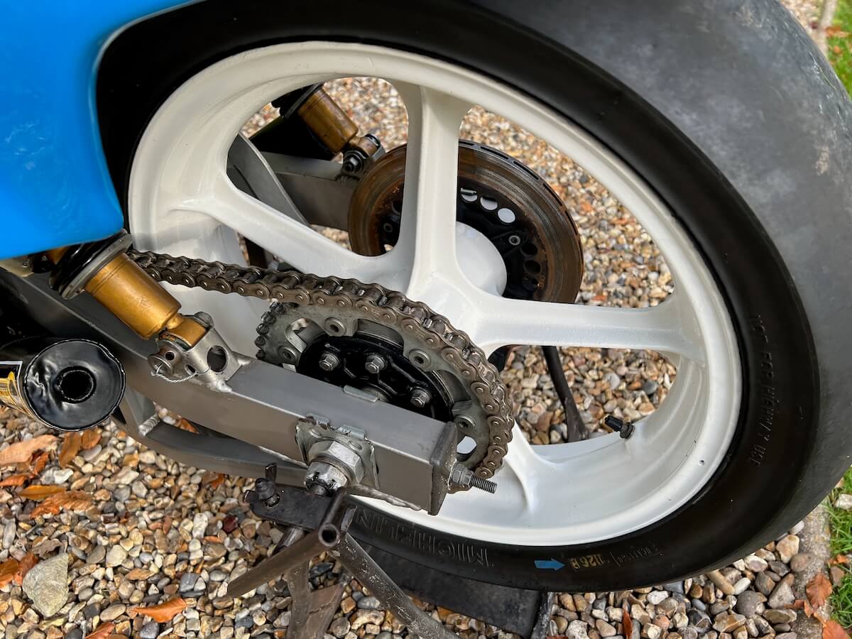 A championship winning race machine in partly restored condition, sold as is but was reportedly running well when laid up with fluids drained for display years ago. This is the ex Leanardo Becheroni RG500 from 1981, in which year he won the first EU GP500 Championship on this bike. He also won the Italian 500 class in 1983 on this same machine. Sadly Leonardo died in 1983 so he’s no longer around to tell the tale but fine racing machines tell their own story and there are none finer than the iconic RG500 square four stroker that won so many races in this era of motorcycle racing. Frame and engine numbers define it as a matching numbers mk6 model, factory records don’t tell us the exact production numbers but average over the model years was around 100 per year so it is a rare old thing. Now it is here and with a closer look it is clear that the frame has been restored and is in exceptionally good condition. The fairing is a display fit and recently painted too. Wheels look like they have had a blow over as well probably. The engine on the other hand looks like it was raced last week! We haven’t even tried to recommission it and although everything appears to work it has been standing so long that a complete strip and refresh is the only way to go with this one, to be safe. A truly lovely race bike with history. Comes with paddock stand. Pictures of frame and engine numbers on request.