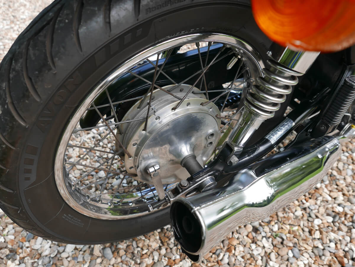 Back in stock now and carbs have been stripped, cleaned and rebuilt at Classic Bike Workshop. Timing and carburettor balance is spot-on so all good and ready to ride. This is a good original US model, stunning in metal flake orange and with a genuine Honda exhaust system in superb condition. This bike has featured in the Classic Motorcycle Mechanics magazine, ridden by Chris Moss who absolutely loved it. The engine sounds lovely, well serviced and well looked after. One sidepanel is cracked and the engine has lost some paint but otherwise very nice indeed. This is the model we had in the UK as the 500 Four but it became a 550 in the States, retaining the iconic four silencer system but moving to the later and larger instruments. Post-recommissioning test rides have been a joy, it’s got a heavy clutch so probably has the upgraded springs and perhaps a return to standard could be considered in the future but this bike reminds me of how well the mid-sized Honda fours behave on the road. These are new pictures and video so you’re up to date.