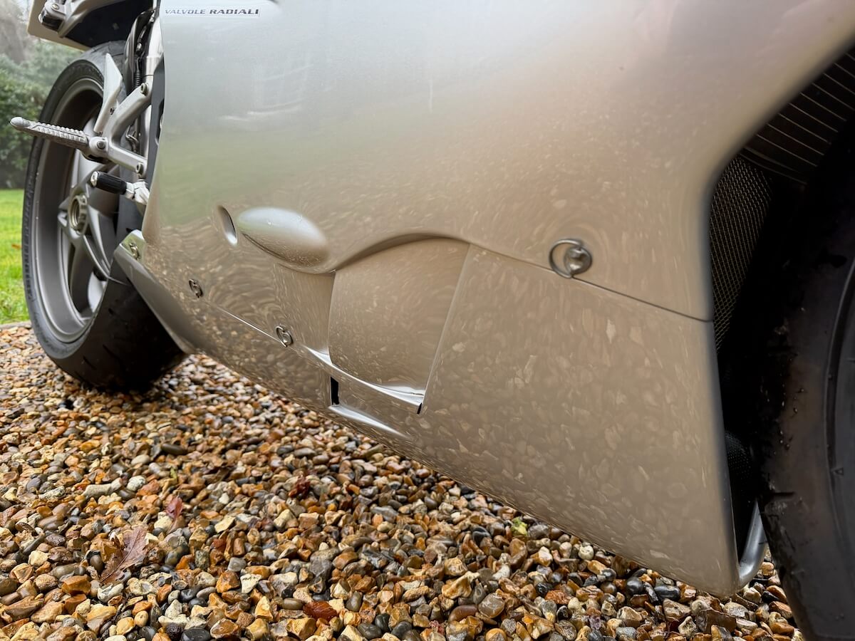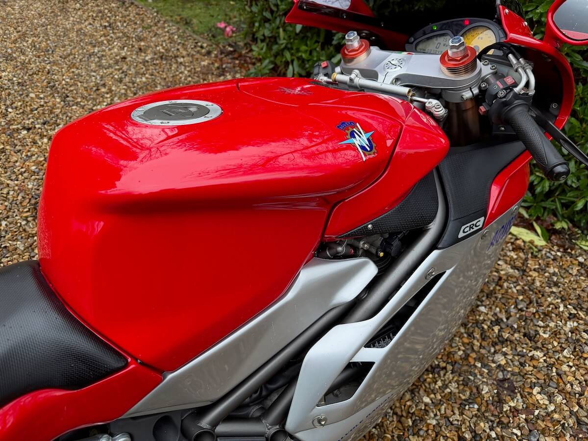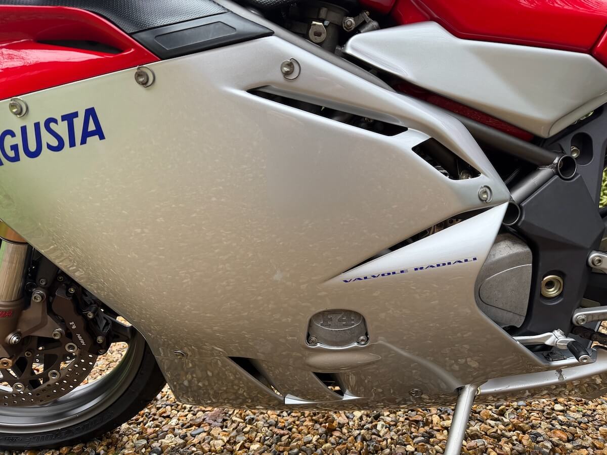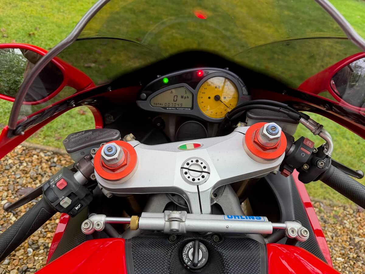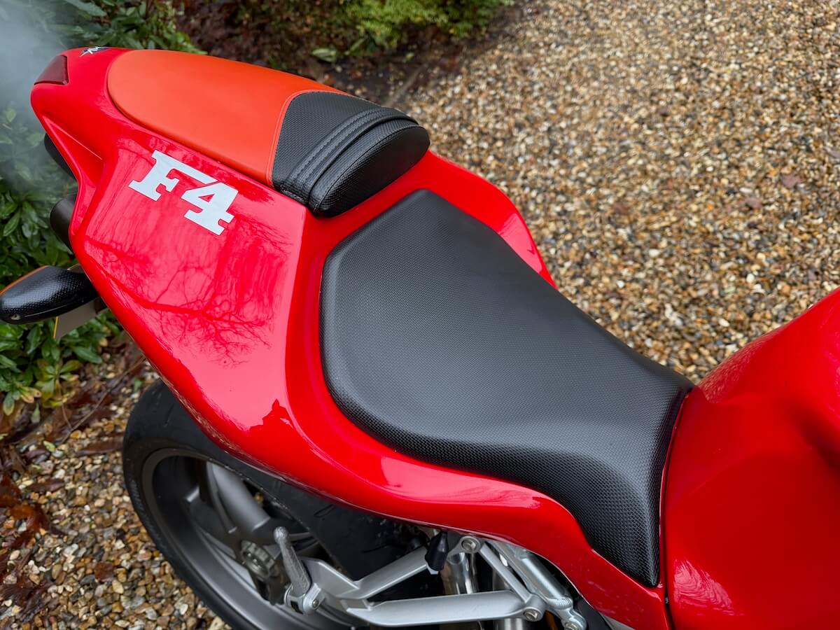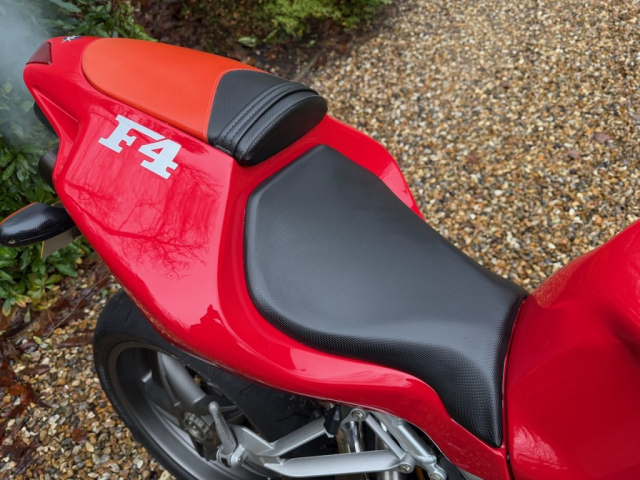 A very tidy example of the iconic F4S with very low mileage and a well documented early history. This early UK machine #191 was pre-ordered in October 1999, invoiced by Three Cross (importers) to Baines Racing (official dealer) in July 2000 and first registered in March 2001. It has been owned and loved by only two owners from new and they are good friends so provenance and ownership history is strong. Very rarely used in recent years but maintained and well looked after although there are a few litte knocks and scuffs as you can see, mostly from the garage, certainly never crashed and the paintwork is all original. In fact all of it is, including the rare dual seat option which was specified from new and well documented. Everything works perfectly and it will come with a new MOT for the new owner. New Bridgestone hypersport tyres were fitted a few years ago and are almost unworn. I will ride it and report back but it starts instantly, revs cleanly and idles smoothly so all is looking and sounding very good indeed. The video was taken on a cold damp day and even though the engine was warmed carefully the exhaust is still clearly visible – it is not smoke, it does not smoke. And doesn’t it look good? Tamburini styling at it’s 916 best, still looking fresh and modern over a quarter of a century after it was created. Art.