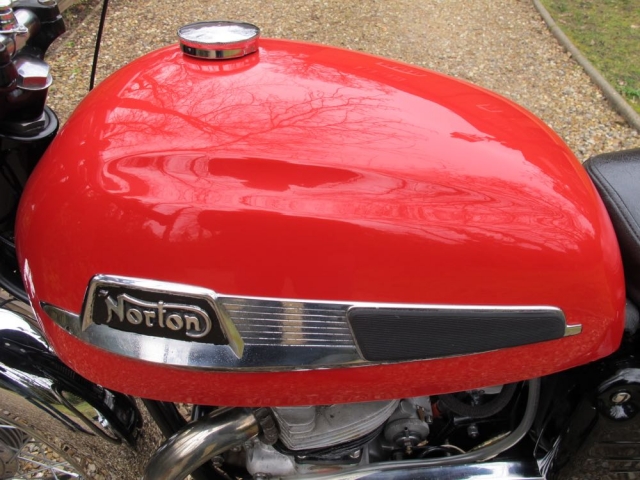 A lovely slightly older restoration, nicely done in red with beautiful chromed original deep-valanced mudguards and standard single monobloc carb; correct for this year. Matching numbers, all paperwork correct and registered on an age related number from import in 2011. Just recommissioned in our own workshop after little recent use, in fact almost no use as we know it. So, it took a bit of fettling but it’s now strobe-timed to perfection, fuelling efficiently and ready for some miles. Extended test rides resulted in a mag failure and while that’s off and away being refurbished we will fit a new timing chain to quieten down the otherwise very sweet sounding engine. The seat has now been rebuilt by RK Leighton to original specification and it completes what is a very pretty picture indeed. This bike has just passed an MOT test. New pictures will be uploaded if it doesn’t sell before all the new parts are fitted and working.