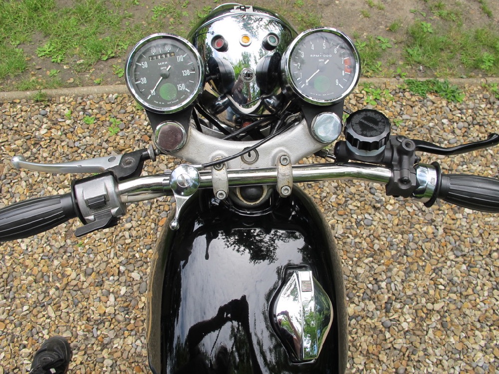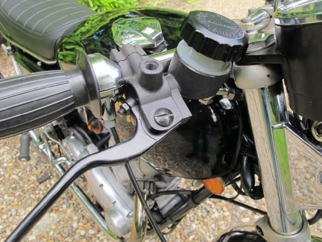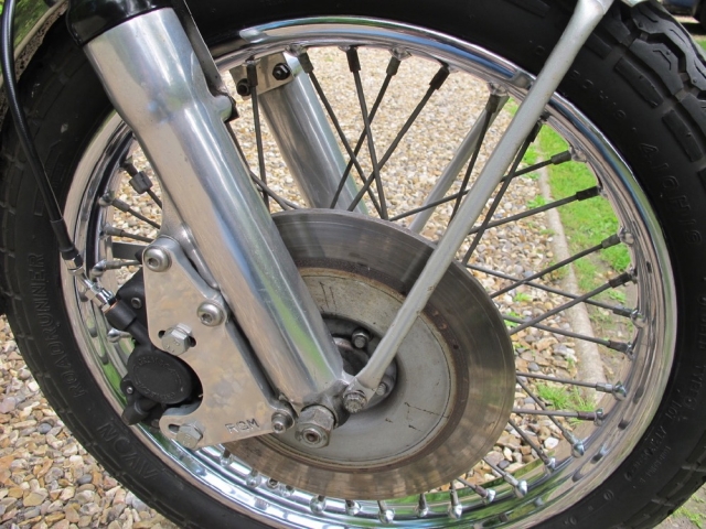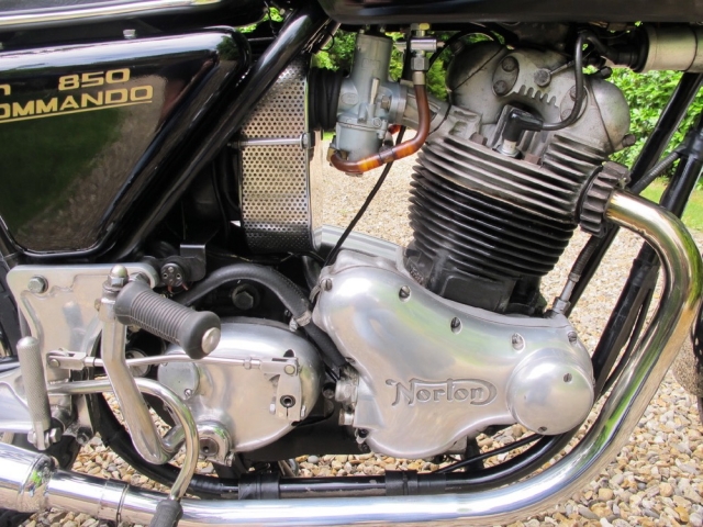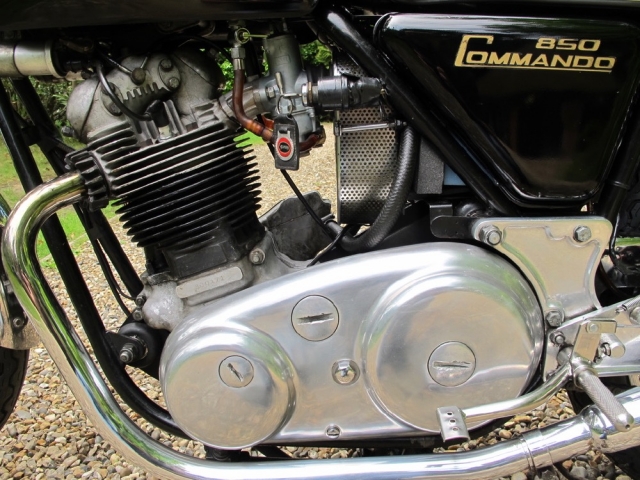 Matching numbers 1973 Commando Roadster in black with some really tasty and practical upgrades. The most obvious is the RGM front brake conversion which is as good as it looks when you need to stop safely and quickly. Vernier adjusters on all Isolastic engine mounts are less obvious but invaluable when it comes to adjusting those critical mountings. Rear-set footrests with Norton flat handlebars is a good combination and not overly sporty in fact as the standard footpegs are soo far forward anyway. The classic Roadster look with those upswept silencers is hard to beat isn’t it? The document file is comprehensive and testimony to a cherished life in the hands of the last owner since 1995. The same owner bought the bike in the USA and used it there until moving back to the UK in 2000. Lots of old MOTs and invoices for parts including recent new carburettors and swing-arm bearings. Mechanically quiet and smoke-free, starts easily and idles smoothly as you can hear. It’s oily at the front of the cylinders though, and down on compression on one side so for this price it comes with a top-end rebuild to ensure all is healthy and oil-tight. If that’s a job you’re happy to do yourself please call and we can talk about a lower price for you. It’s not in concours condition but it’s excellent all round; no bad bits; and comes from a very good home so truly one you can enjoy riding and showing off.
